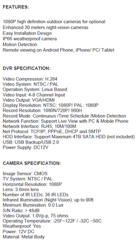 2MP 1080P Full HD Day/Night AHD Camera 4CH DVR Kit H.265 Weatherproof
