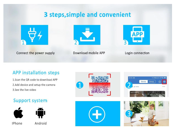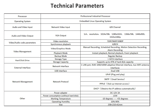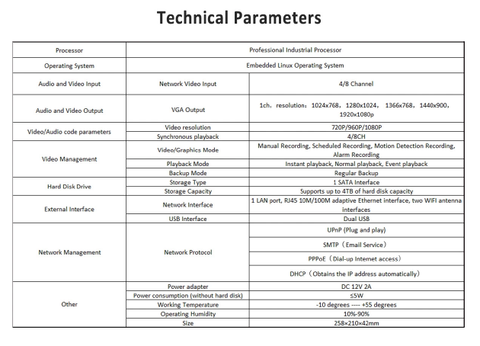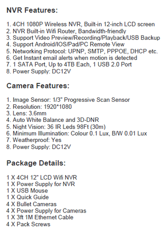 Power Supply: NVR 12V 3A, Camera 12V 1A