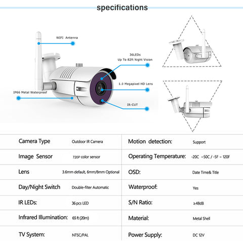 Power Supply: NVR 12V 2A, Camera 12V 1A