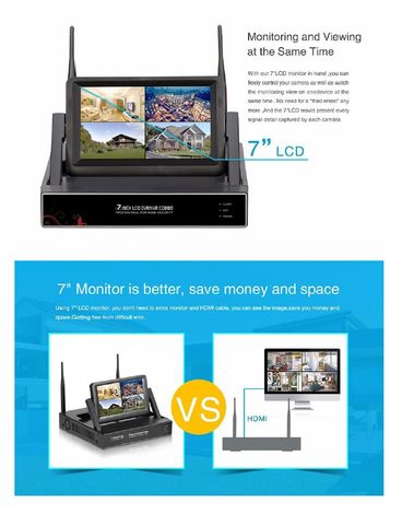 •   1 x WIFI NVR with 7 inch LCD Screen (NO HDD) - No hard drive