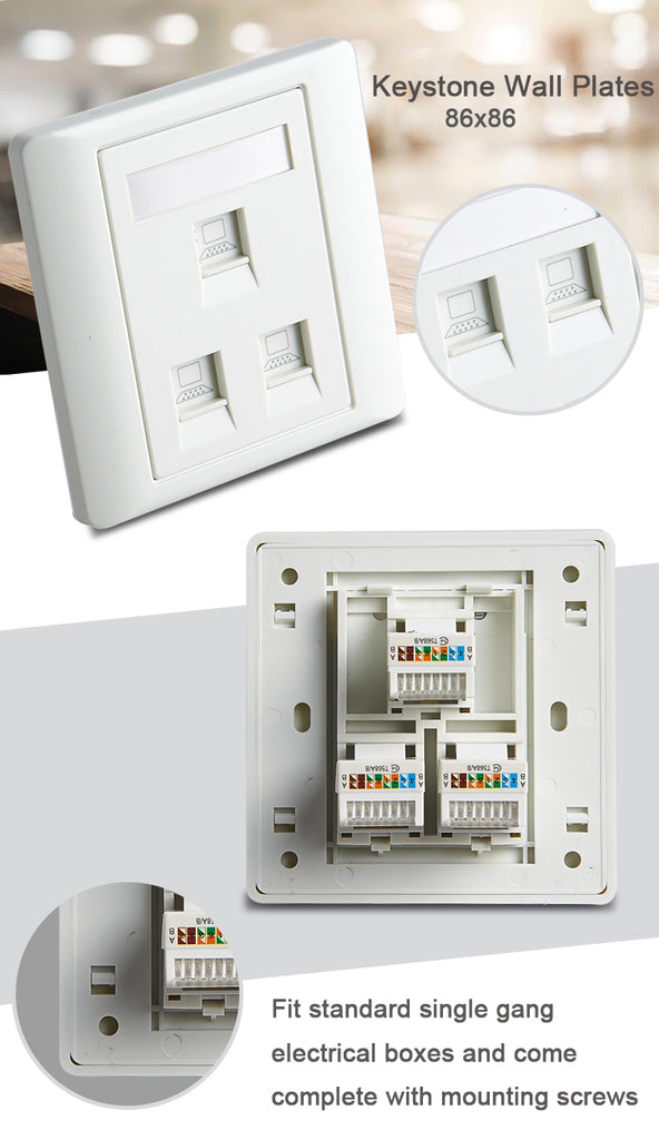 Wall faceplate for standard keystone jack RJ45 Optional Cat5e Cat6 Cat6a Cat7