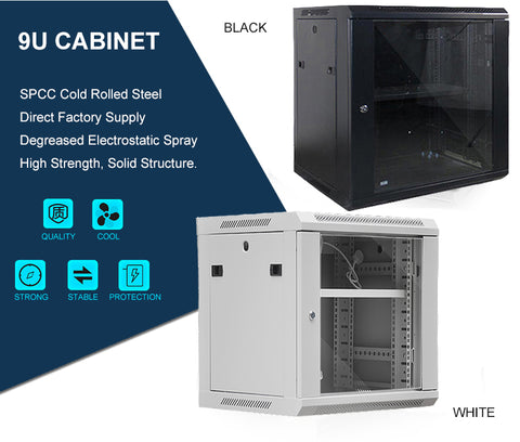 Wall Mounted Network Server Data Cabinet Optional Sizes 4U 6U 9U 12U with Perforated or Glass Door, Singe/Double Section